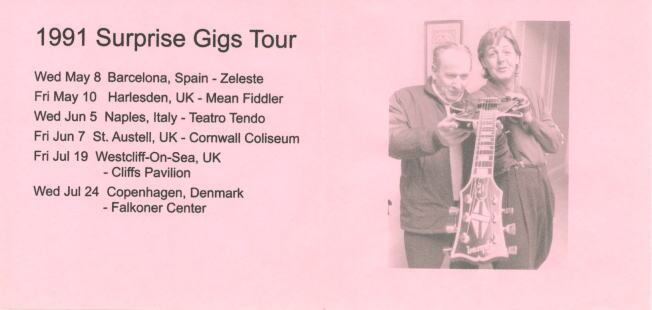 1991年 Surprise Gigs Tour の日程表付き