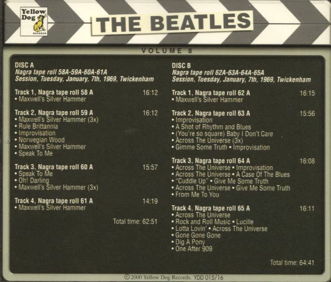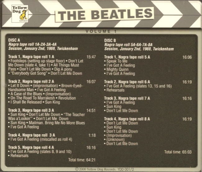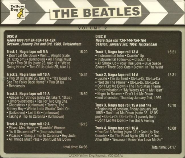 ・Don't Let Me Down・Well ... Alright (slate 21,6:35pm)・(Unknown)・All Things Must Pass・Two Of Us (slate 23, take 1)・“We're Going Home”・Two Of Us (slate 25. take 1)