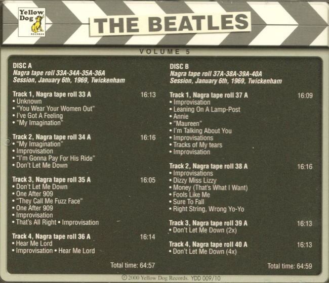 ・Beginning of session, Friday January 3rd, 1969・Don't Let Me Down (slate 35, 12:05 pm)・Ob-La-Di,Ob-La-Da (1 parody line)・Don't Let Me Down・I've Got A Feeling